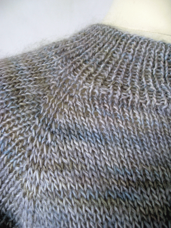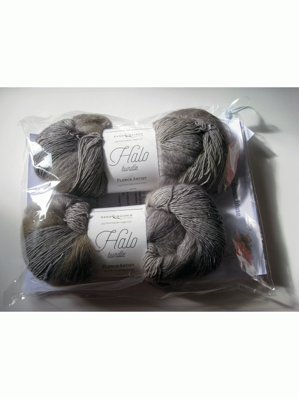 Strikket i Halo Bundle. Produktet består af to garnkvaliteter, som er i samme indfarvning. Blusen strikkes med to tråde.